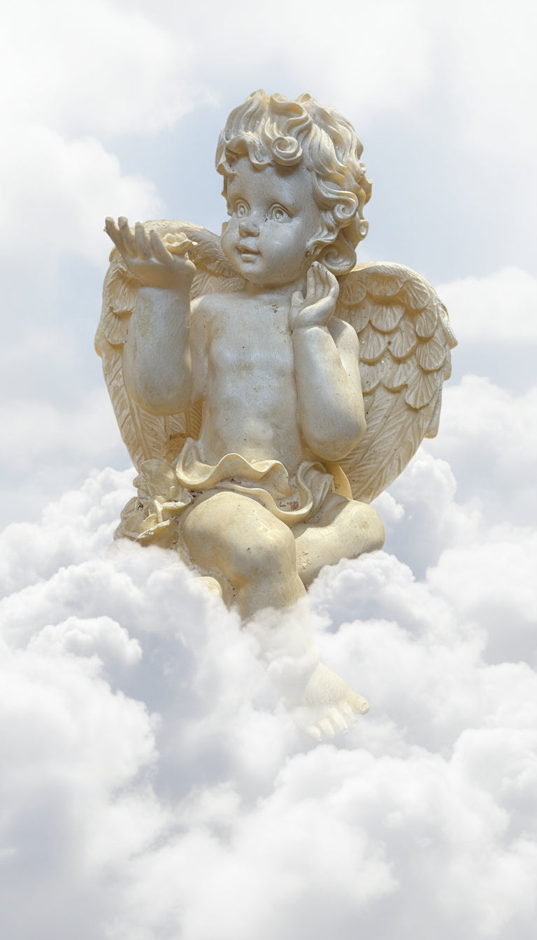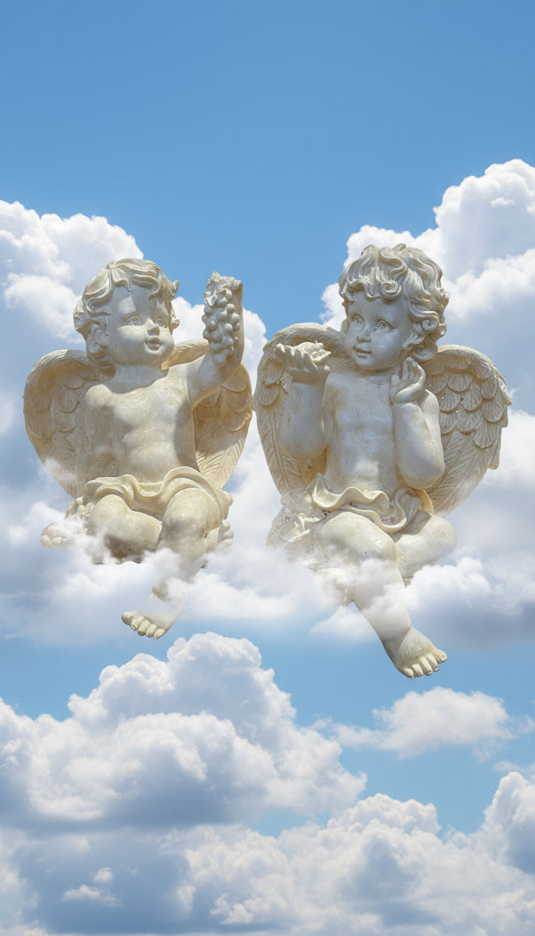 Zwei Engel-Skulpturen in sitzender Pose auf einer Kante oder Kante einer Oberfläche. Feine Details, glatte Satinoberfläche und zarte Farbgebung verleihen ihnen eine elegante, festliche Ausstrahlung. Perfekt als Dekoration auf Tischkante, Regal oder Adventstisch; schönes Geschenk oder Sammler-Objekte. Maße leicht variierend je Modell.