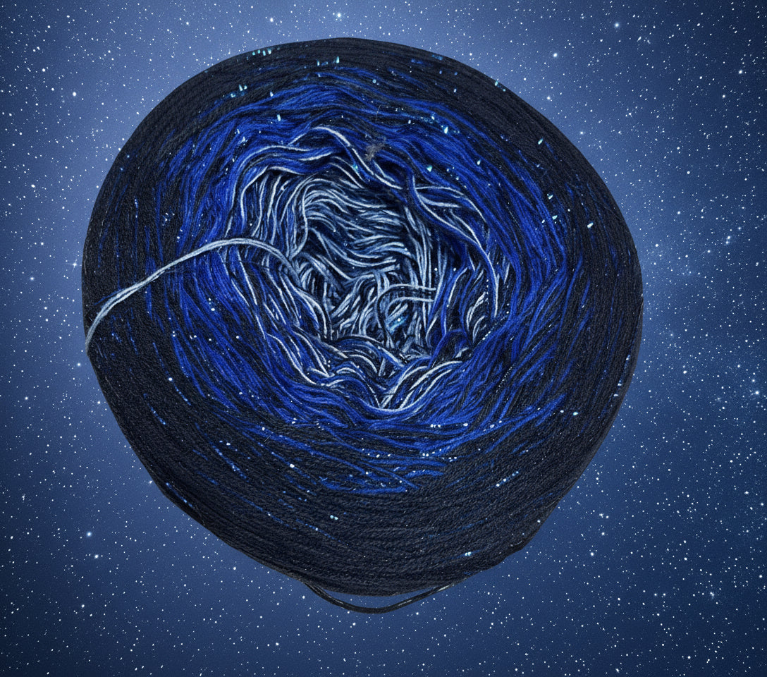 Dunkel wie die Nacht, durchzogen von schimmernden Blautönen und funkelndem Glitzer – „Sternennacht“ ist ein Garn, das Magie in jedes Projekt bringt. Der intensive Schwarzton bildet die mystische Basis, während tiefblaue Nuancen und glitzernde Highlights wie funkelnde Sterne darüber tanzen.