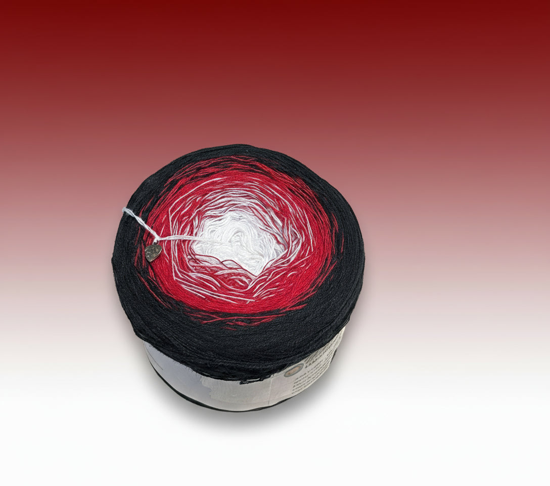 Dieses hochwertige, dreifädige Garn verläuft in intensiven Flammenfarben von tiefem Schwarz über leuchtendes Rot bis zu weiß. Mit einer Länge von 1000 m und einem Gewicht von 200 g eignet es sich hervorragend für großzügige Projekte wie Schals, Cardigans, Ponchos oder Decken. Die gleichmäßige 3-Fädigkeit sorgt für ein gleichmäßiges Strick- oder Häkelbild und tolle Farbverläufe.