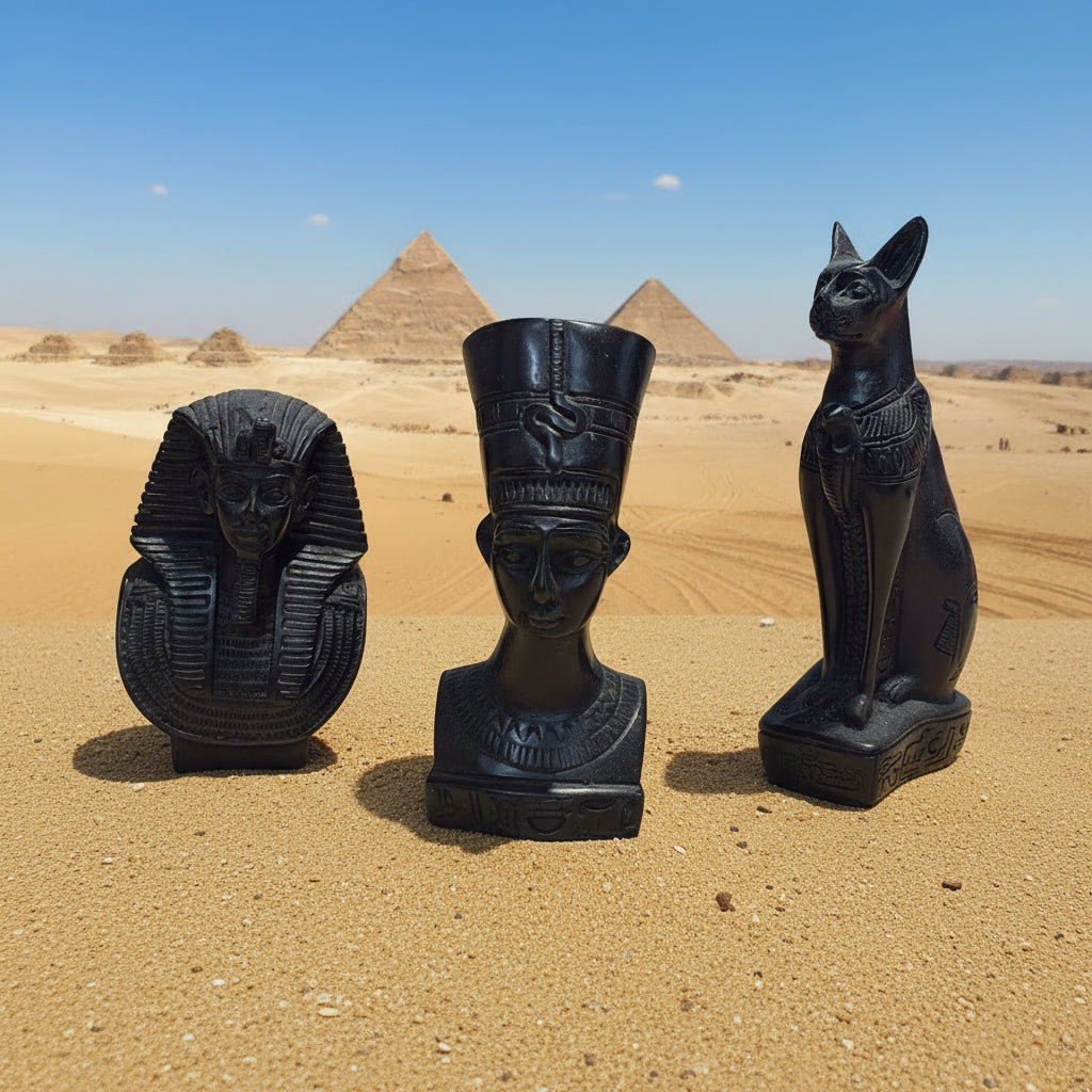 Drei stilvolle ägyptische Figuren im passenden Set, ideal für Dekoration, Sammler oder als Geschenk. Jede Figur besticht durch feine Details, antik wirkende Oberflächen und eine stabile Basis. Ideal zur Verschönerung von Wohnzimmer, Regal, Schreibtisch oder Vitrinen.