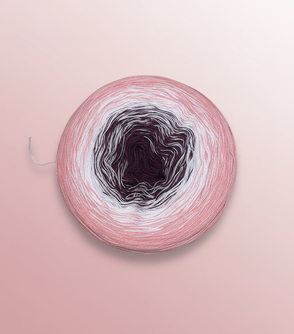 Mit einer Lauflänge von 1500 Metern und einem Gewicht von 400 Gramm bietet dieses Garn genug Material für große Tücher, Pullover, Cardigans oder zauberhafte Decken. Der weiche, fließende Farbverlauf sorgt dabei für ein stimmungsvolles Spiel zwischen Leichtigkeit und Tiefe – wie die Blüte einer Magnolie im sanften Frühlingslicht.