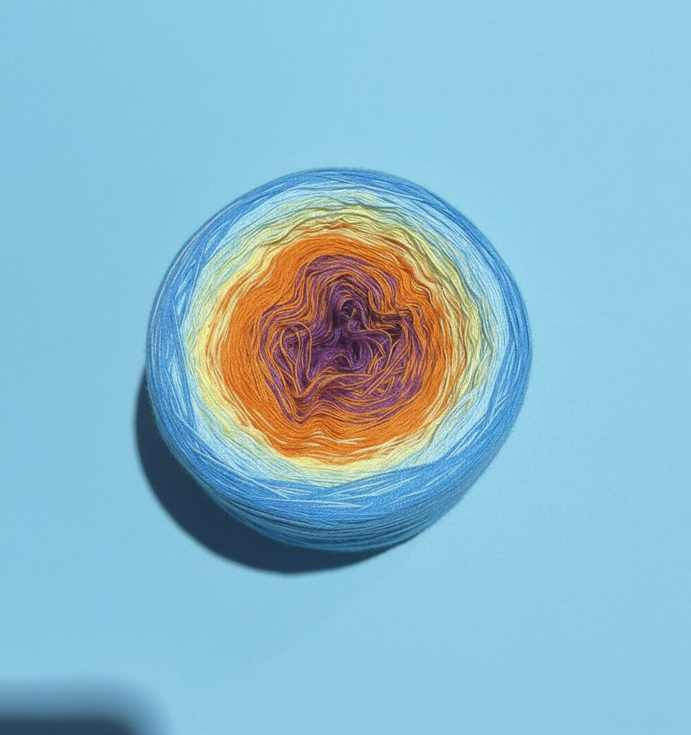 Garn „Sonnenhimmel“ ist ein hochwertiges 4-fädiges Garnpaket mit einer Lauflänge von 1250 m und einem Gesamtgewicht von 320 g. Die feine Fadenführung sorgt für eine gleichmäßige Struktur, gute Maschendefinition und eine angenehme Haptik – ideal für anspruchsvolle Strick- oder Häkelprojekte. Sanft strahlende Farbtöne erinnern an Sonnenaufgangsstimmung und verleihen Muster und Details eine warme, leuchtende Tiefe.