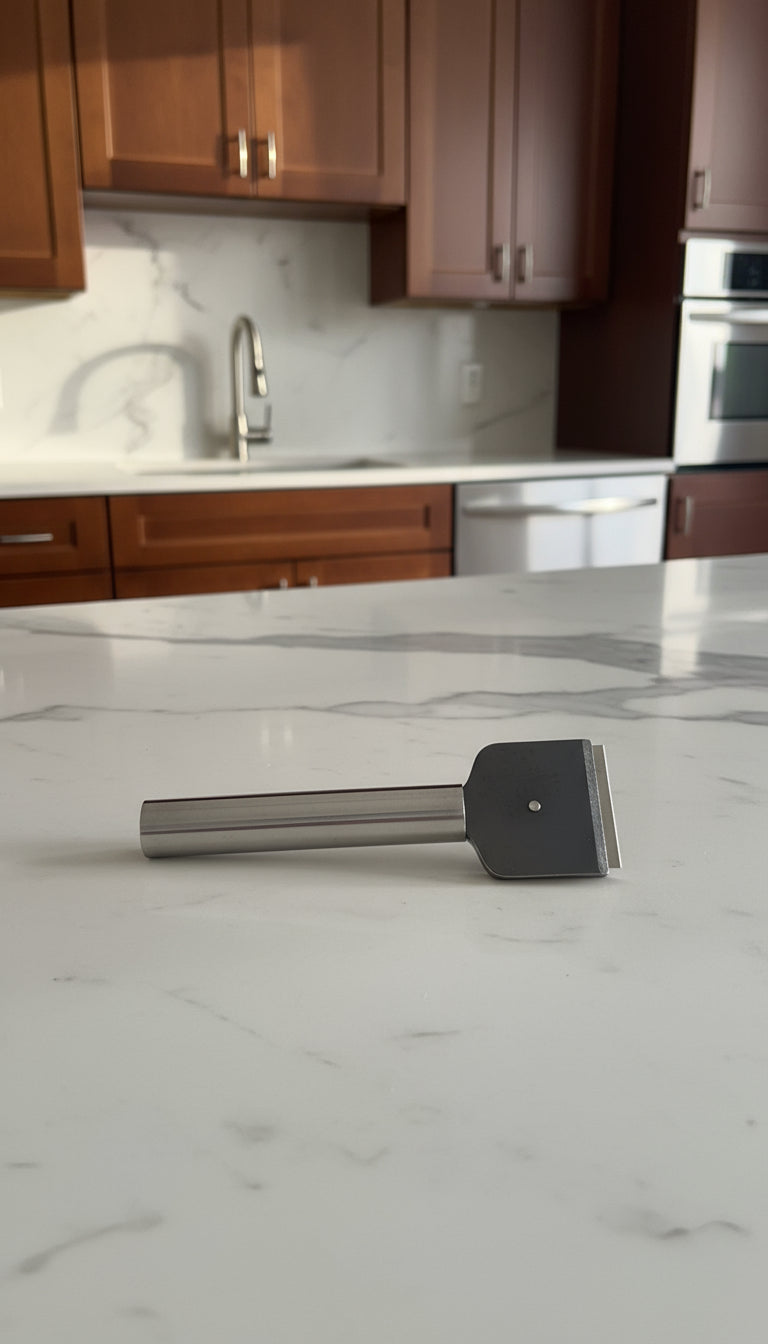 Der Ceranfeld- und Kochfeldschaber hat eine Länge von ca. 15 cm. Er erleichtert das Entfernen von angebrannten Speiseresten und Rückständen auf Glaskeramik- bzw. Edelstahlfeldern. Mit robustem Griff und einer scharfen, kratzfreien Kante wirkt er praktisch und zuverlässig, um das Kochfeld sauber zu halten.