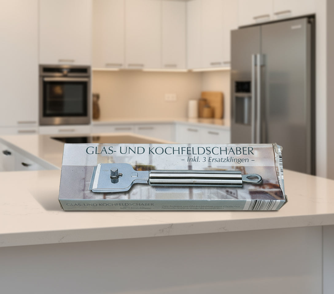 Der Schaber bietet eine stabile Kante zum mühelosen Entfernen von klebenden Rückständen auf Glas- und Edelstahl Oberflächen. Im Lieferumfang sind drei Ersatzklingen enthalten, sodass der Schaber langlebig und zuverlässig bleibt. Ideal für saubere Gläser, Ceranfelder und Arbeitsplatten.