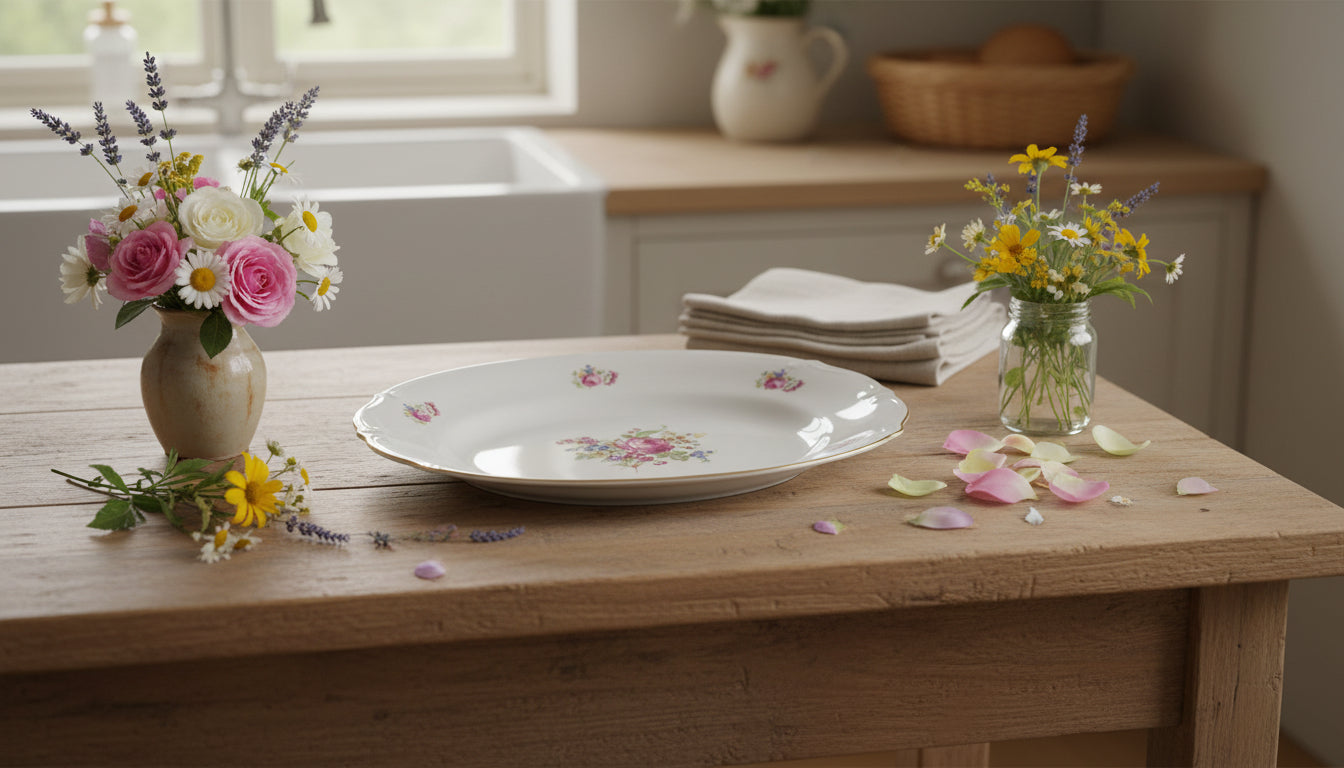 Elegant geformte, ovale Porzellanplatte mit einem feinen Blumenmuster. Die ca. 33 cm lange Platte eignet sich hervorragend zum Anrichten von Vorspeisen, Antipasti, Käseplatten oder als stilvolle Tischdekoration – vielseitig einsetzbar, pflegeleicht und zeitlos elegant.